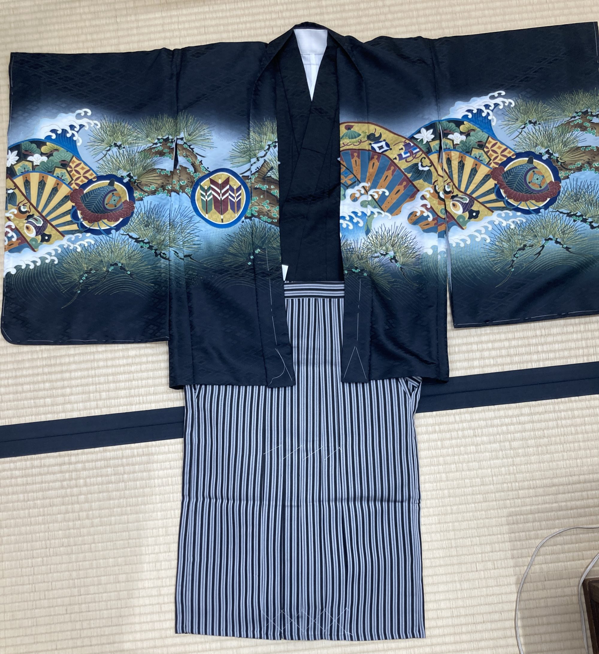 5歳男子祝い着フルセットです。お祝いにお召しになるものがほとんど入っています。その他必要なものは、足袋、襦袢につける半衿だけです。その他お子様のサイズに合わせて、肩揚げ、腰揚げ、半衿付けなどのお直しも承ります。別途料金がかかります。
