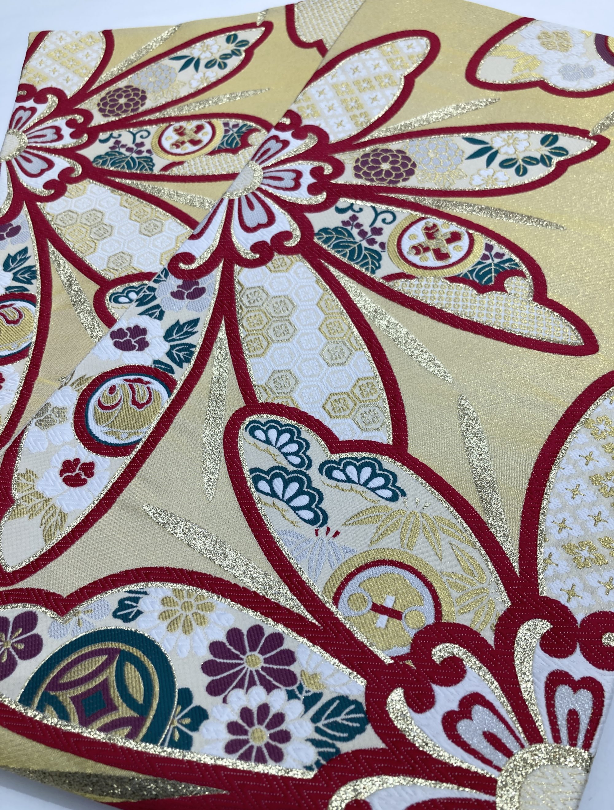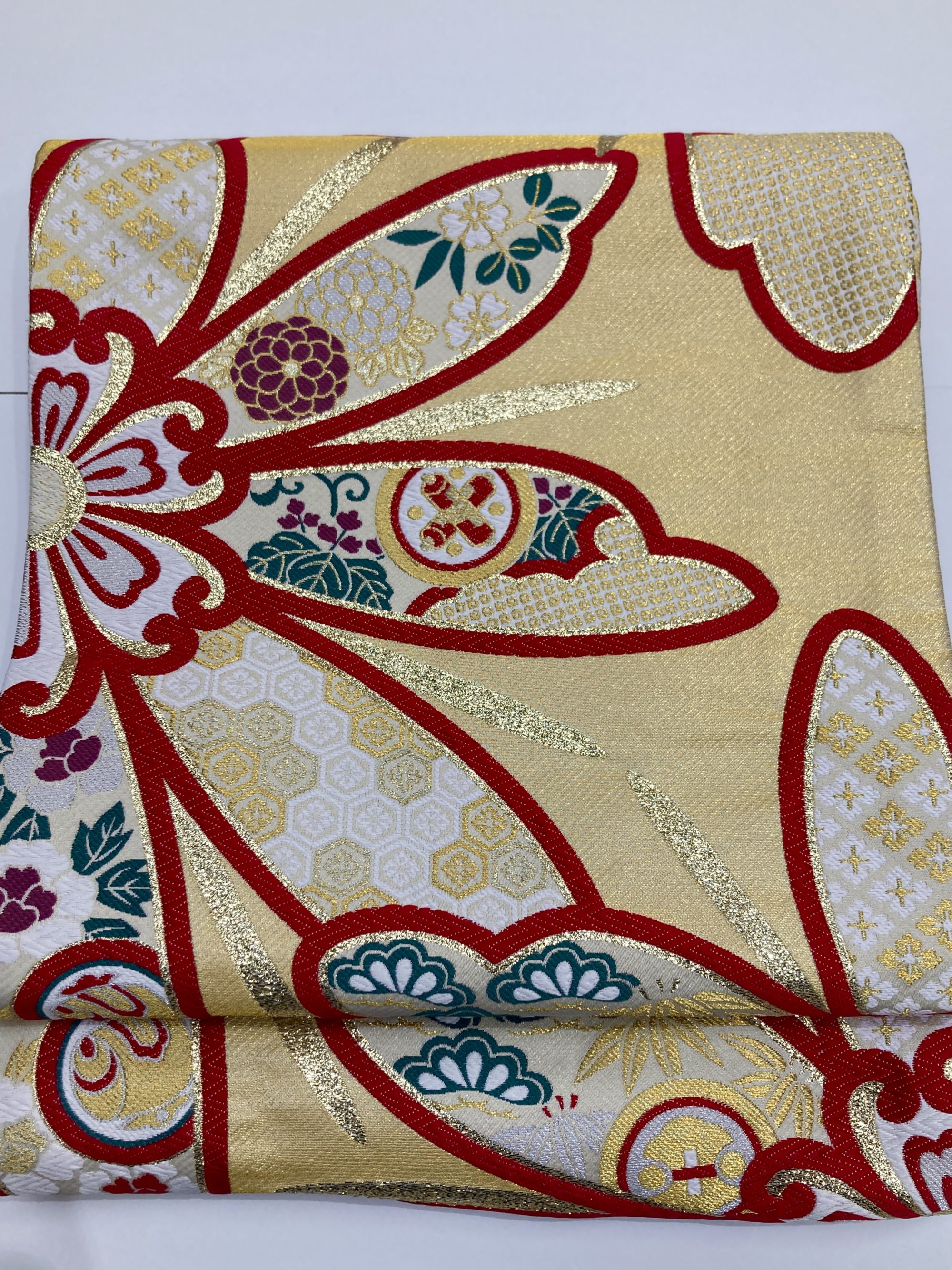 ポリエステルの帯ながら、とても締めやすく扱いのしやすい帯です。とくに振袖用に合わせるのをおすすめしております。