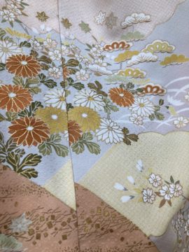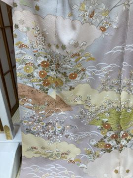 御所解き模様(ごしょどきもよう)」とは、江戸時代に武家の上流階級の女性たちが好んで着用した、極めて気品高く知的な風景文様のことです。
